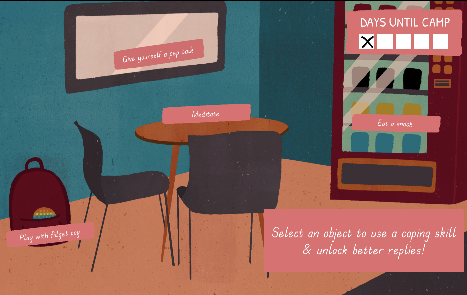 If I’d had more time to work on the game, I would have focused on increasing the choices available to players and giving more options for them to ‘turn things around’ after failing to use a healthy coping skill when the option was first presented.
